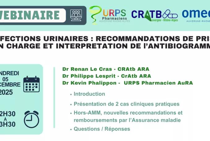 L'URPS Pharmaciens AuRA, le Centre Régional en Antibiothérapie ARA et l'OMEDIT ARA s'associe pour vous proposer 2 webinaires autour de nouvelles recom ...