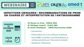L'URPS Pharmaciens AuRA, le Centre Régional en Antibiothérapie ARA et l'OMEDIT ARA s'associe pour vous proposer 2 webinaires autour de nouvelles recommandations en infectiologie et leur application pratique à l'officine.